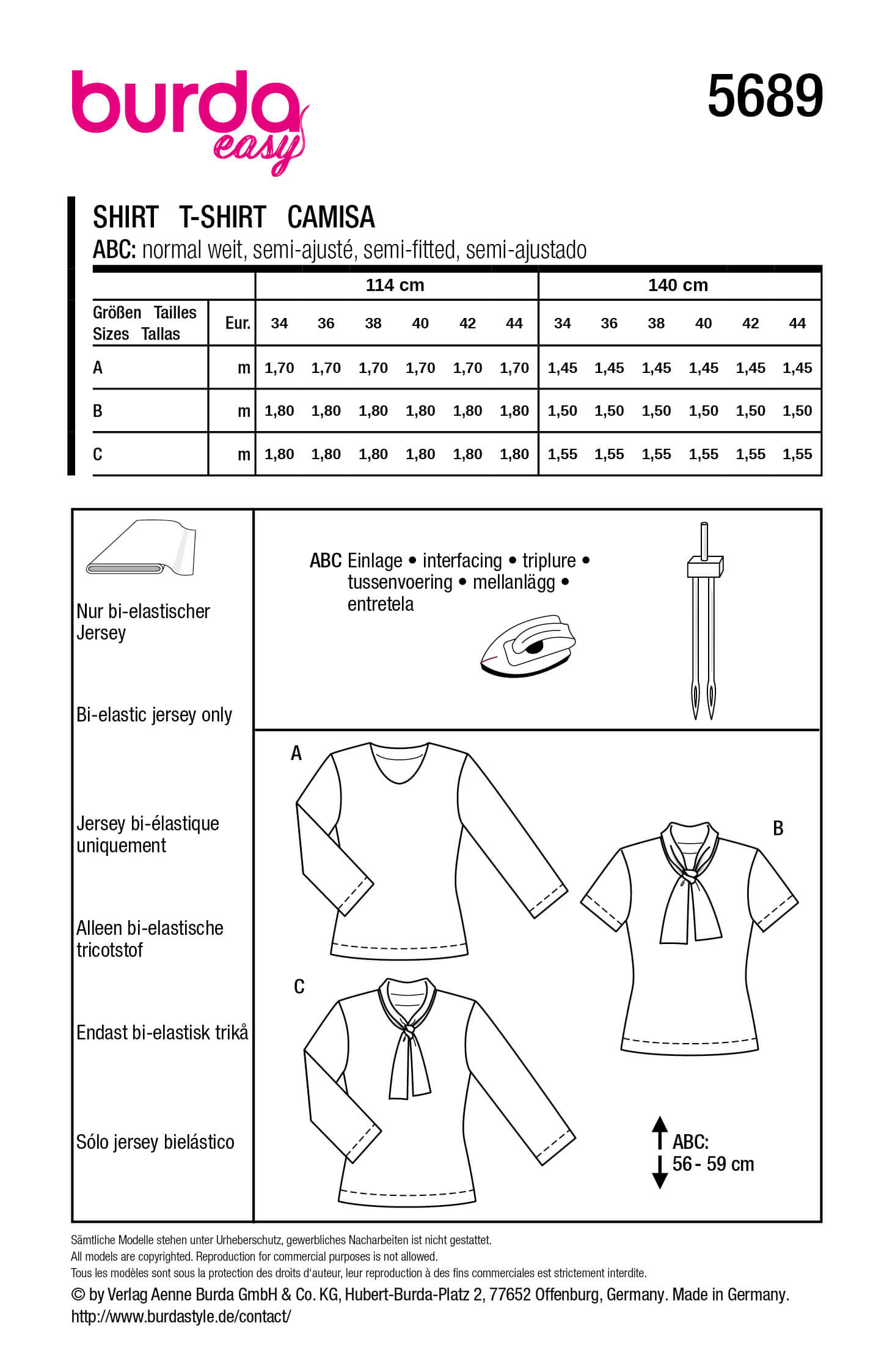 T-skjorte til damer med variasjoner i ermelengden og haslen. Kun for strikkede stoffer.
