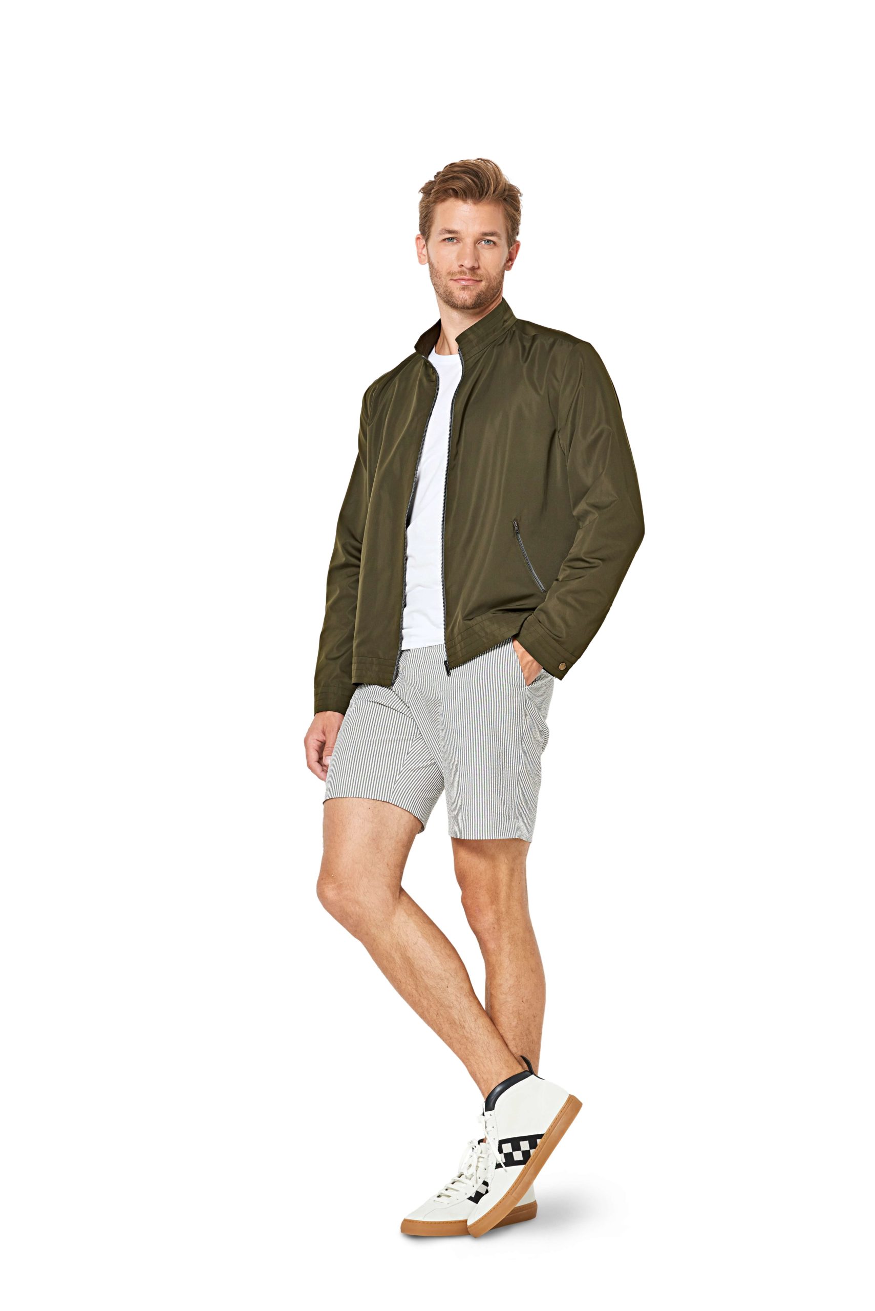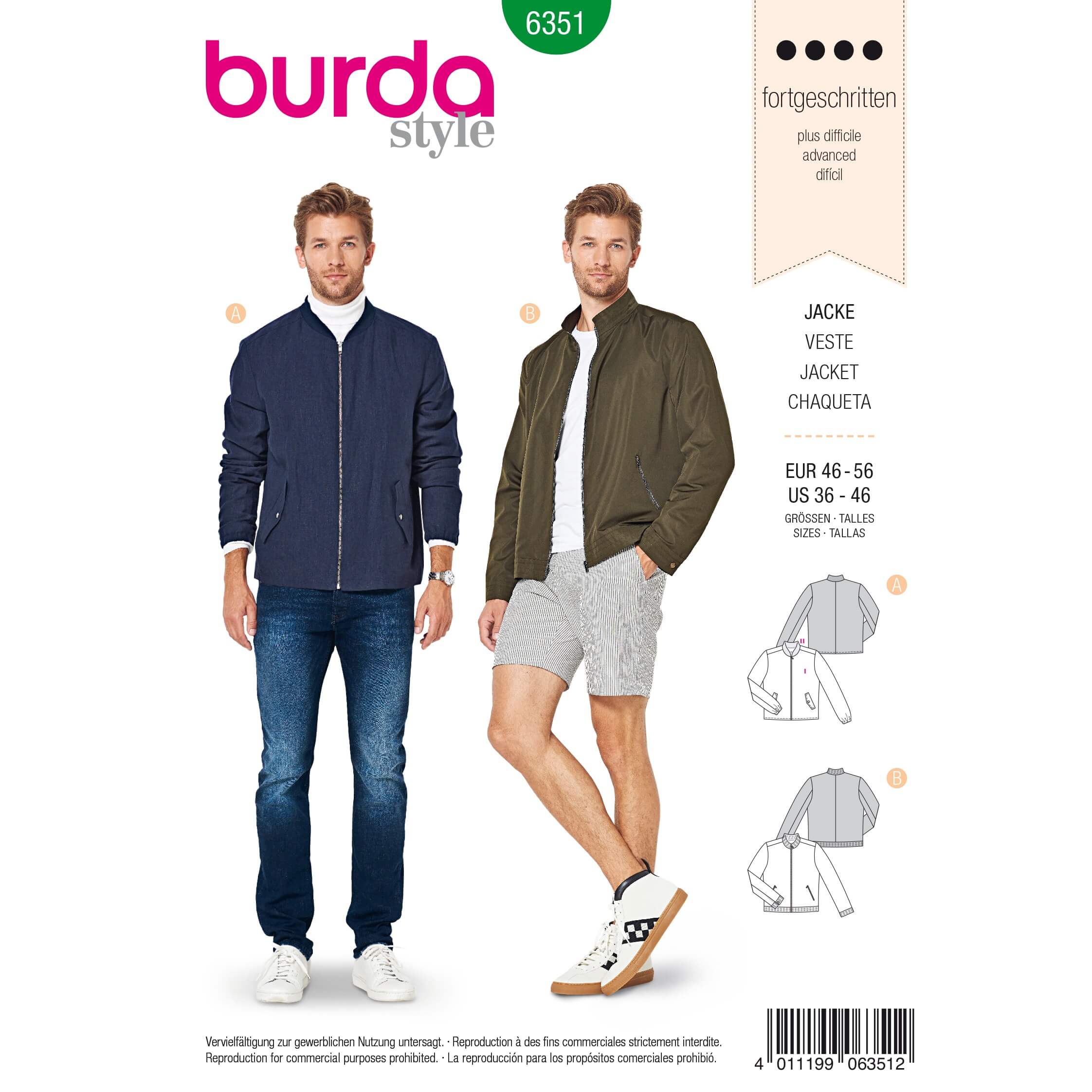Jakke til menn med variasjoner i lommene, nederkanten, ermene og kragen.