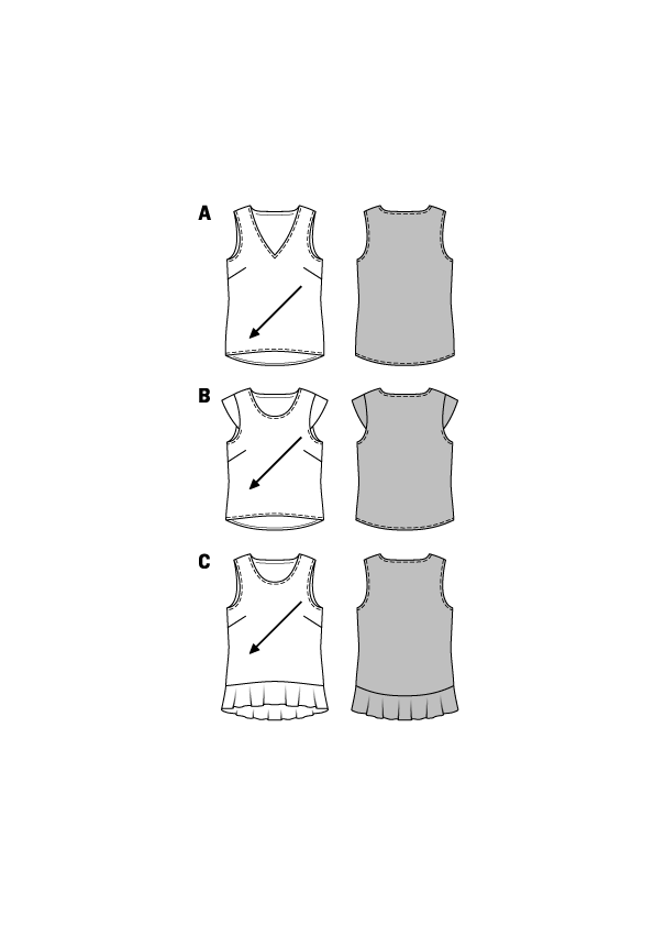 Bluse med variasjoner i halsen, ermene og lengden til damer.