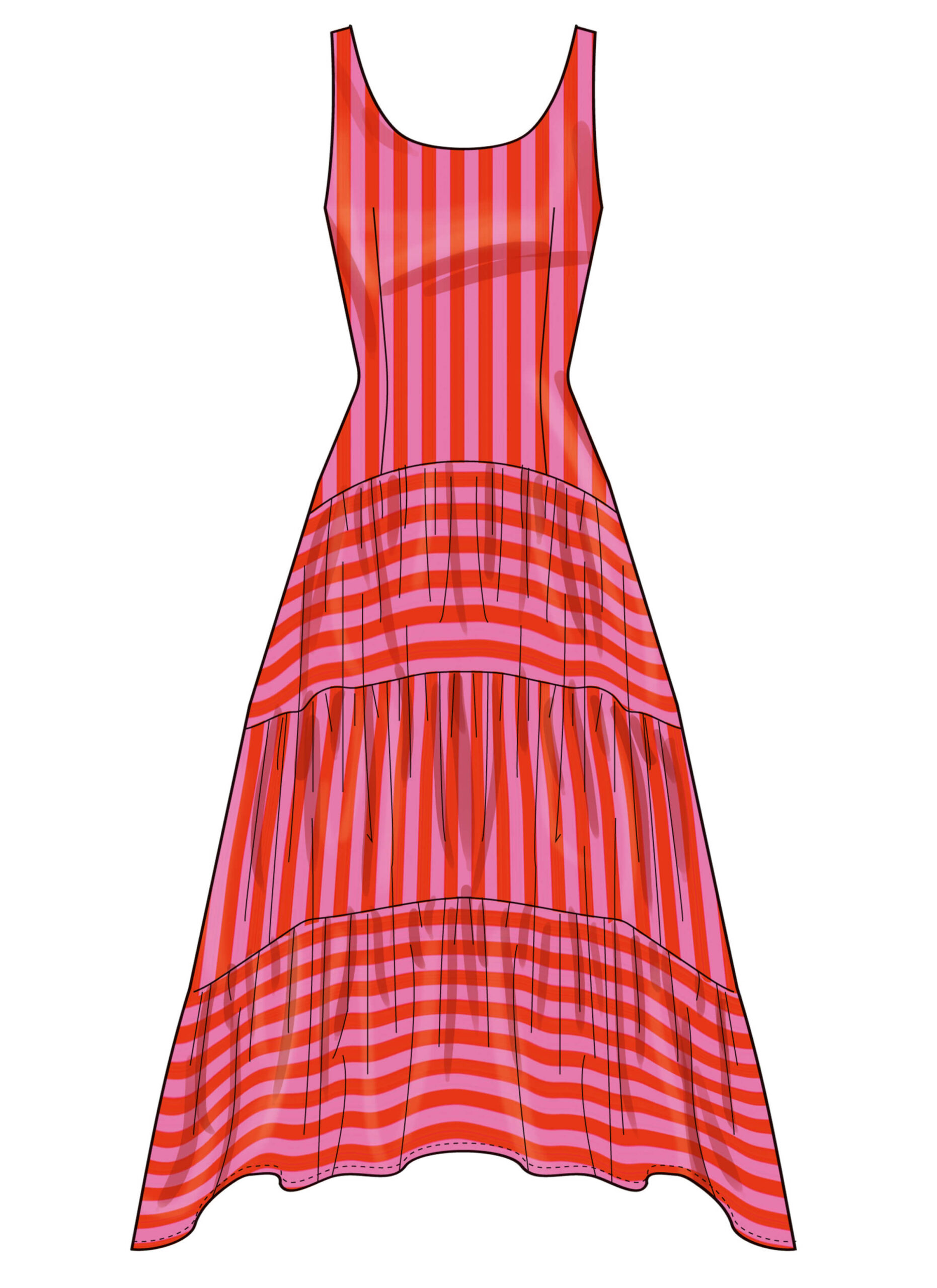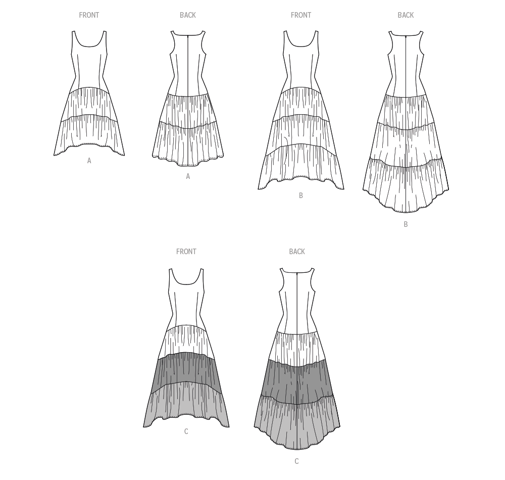 Kjole til damer med variasjon i lengden.