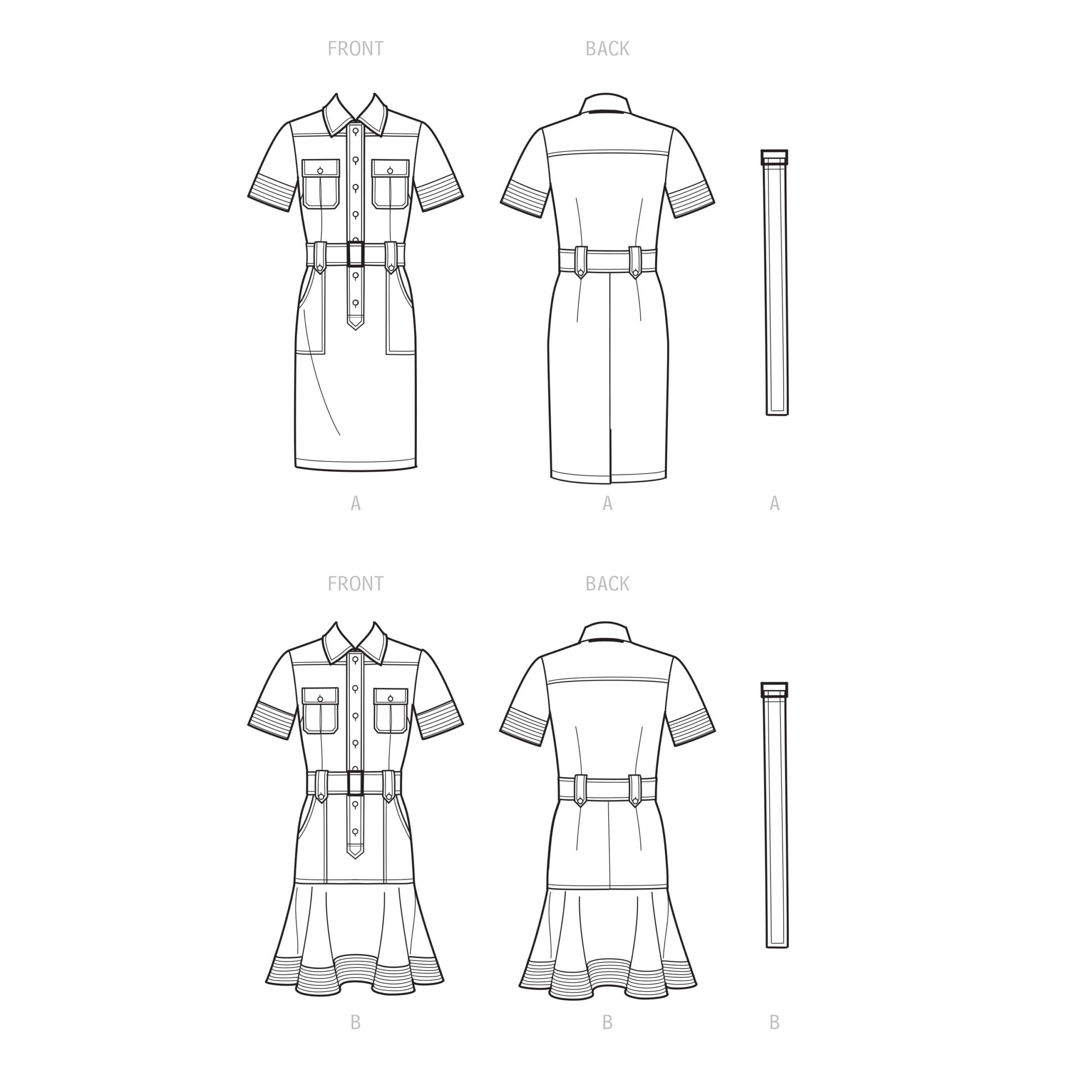 Skjortekjole med belte, to varianter på skjørtet til damer fra designeren Mimi G.