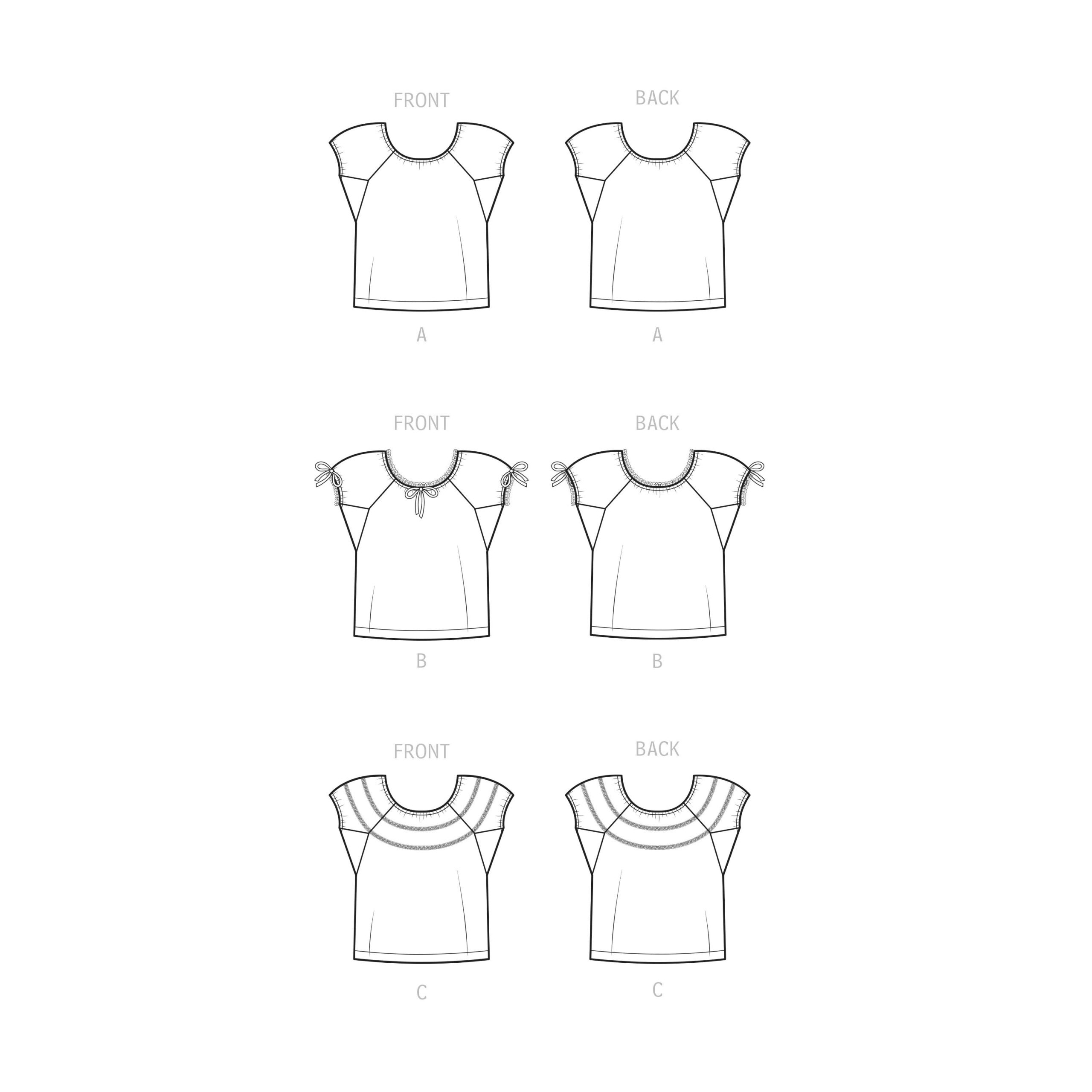 40-talls bluse til damer med variasjoner i halspynten og ermene.
